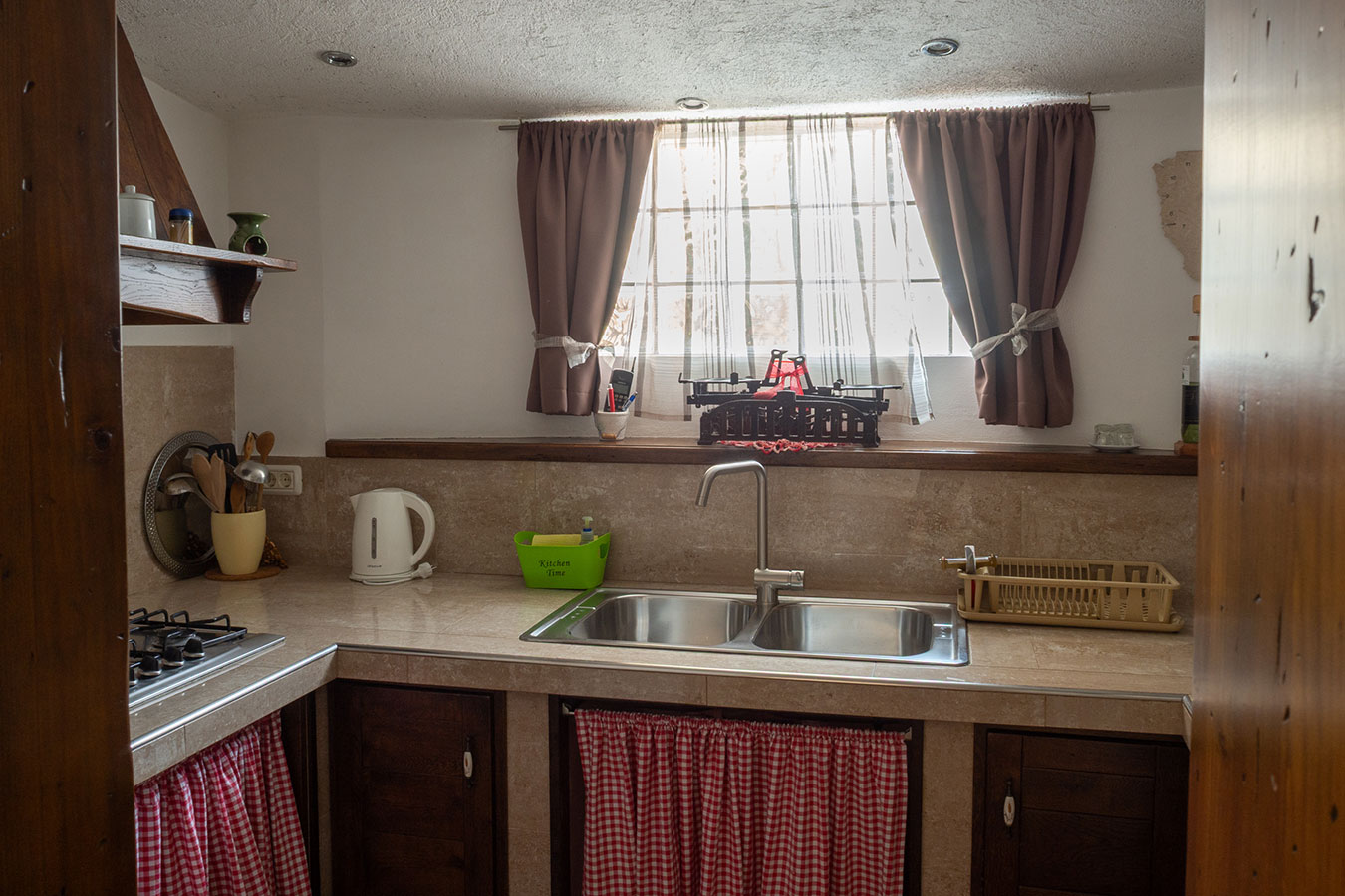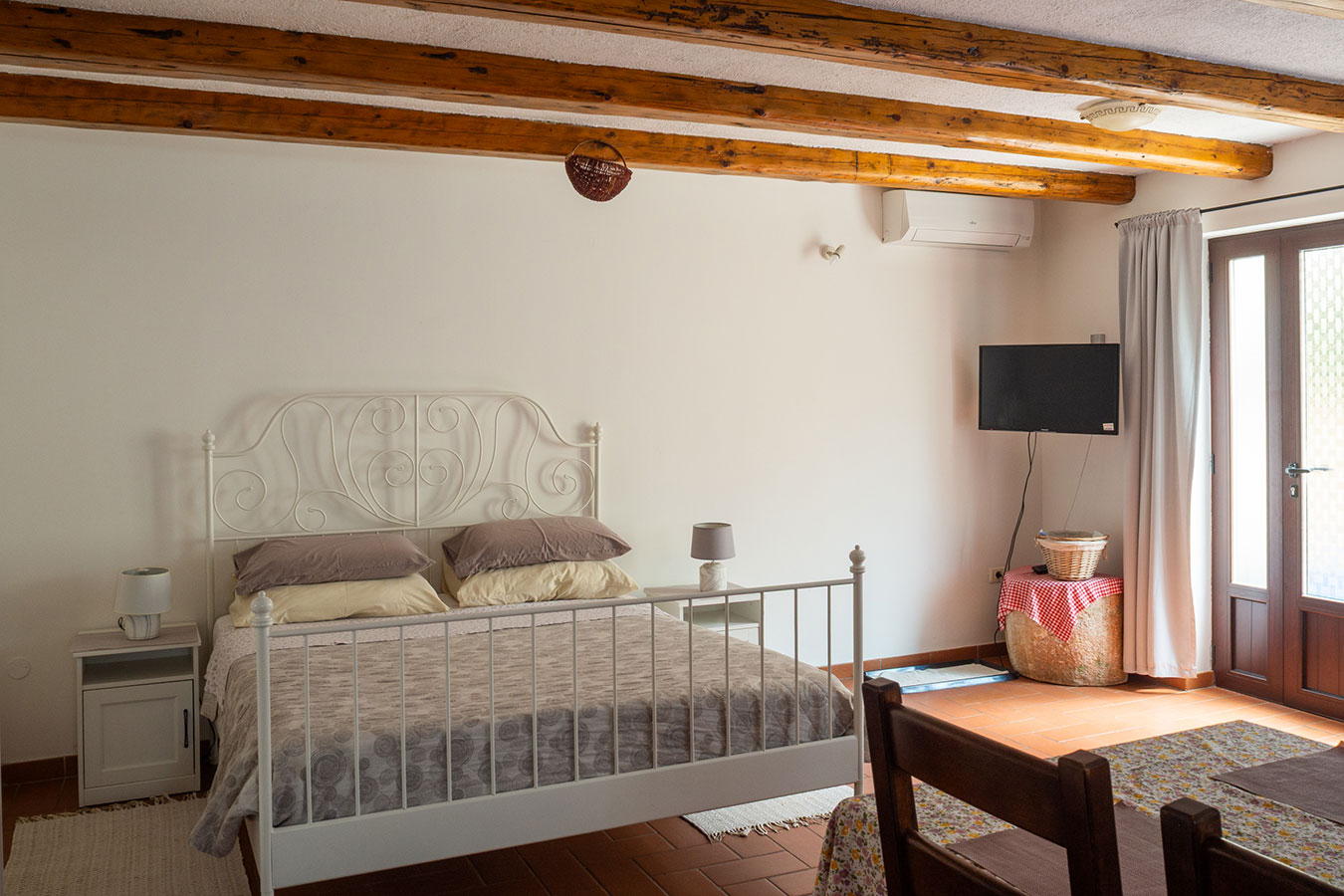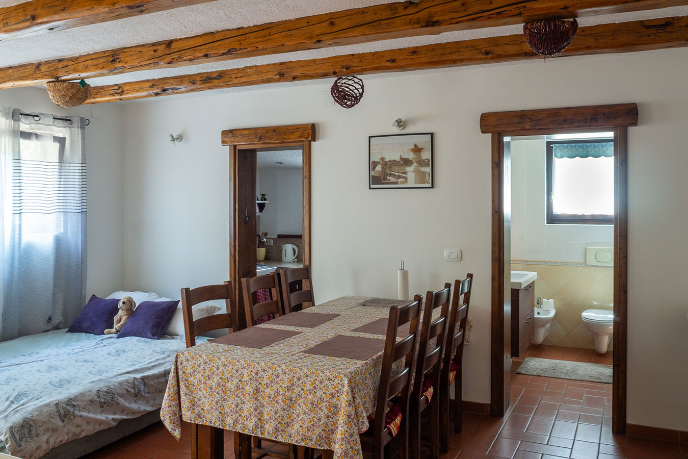 Apartman s velikom terasom, mono lokal s spavaćom i dnevnom sobom zajedno, kauč na razvlaćenje za 1-2 osobe, kuhinja opremljena osnovnom opremom, perilica rublja i suđa, mikrovalna. U kupatilo ima kadu.
