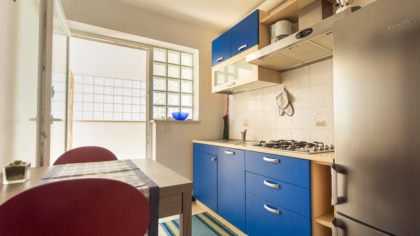 50 m2, za 4 + 1 osobe, Kuhinja + dnevni boravak, kupatilo, 2 spavaće sobe, klima, balkon, TV/SAT, wireless internet, perilica rublja, mikrovalna...